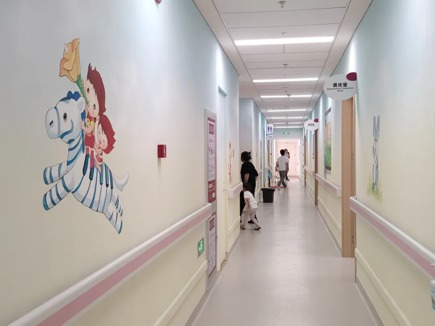 记者注意到,儿科门诊的墙壁上绘满了色彩斑斓的图案,仿佛进入了一个童话世界。雷主任笑着说:“我们儿科门诊进行了彩绘,希望就诊的小朋友来到这里就诊,能有一个开心和放松的状态。”